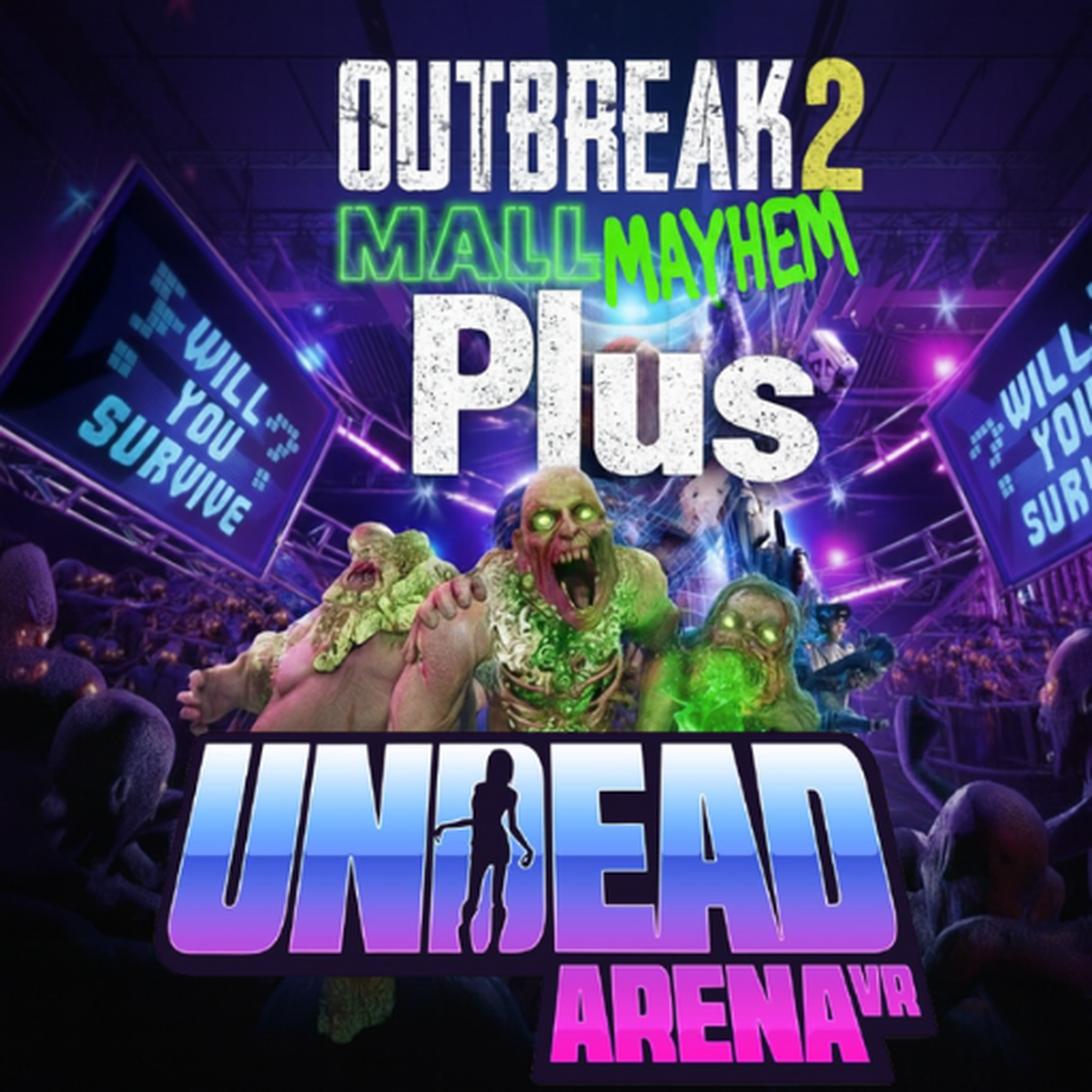 First, you will race against time. Battle the undead. Save humanity’s last hope. In the heart-stopping free roam VR game Outbreak, you and your team of elite soldiers must outlast hordes of zombies while out blasting a ruthless enemy, to recapture a stolen cure. Will you survive? Then, you and your friends are the stars of a post-apocalyptic game show in an ‘80s-retro world. Fight your way up a multi-level arena for the enjoyment of a crowd hungry for mayhem, and the amusement of one wildly enthusiastic game show host. Win, and become legends. Lose, and join the horde. Get ready for Undead Arena!
